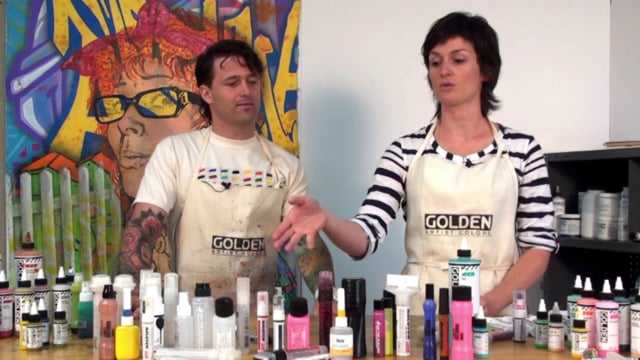 High Flow offers a palette that includes many single-pigment colors, as well as Fluorescent and Iridescent colors. While it acts like an ink, it’s an acrylic so it's compatible with other GOLDEN Acrylic colors and mediums.